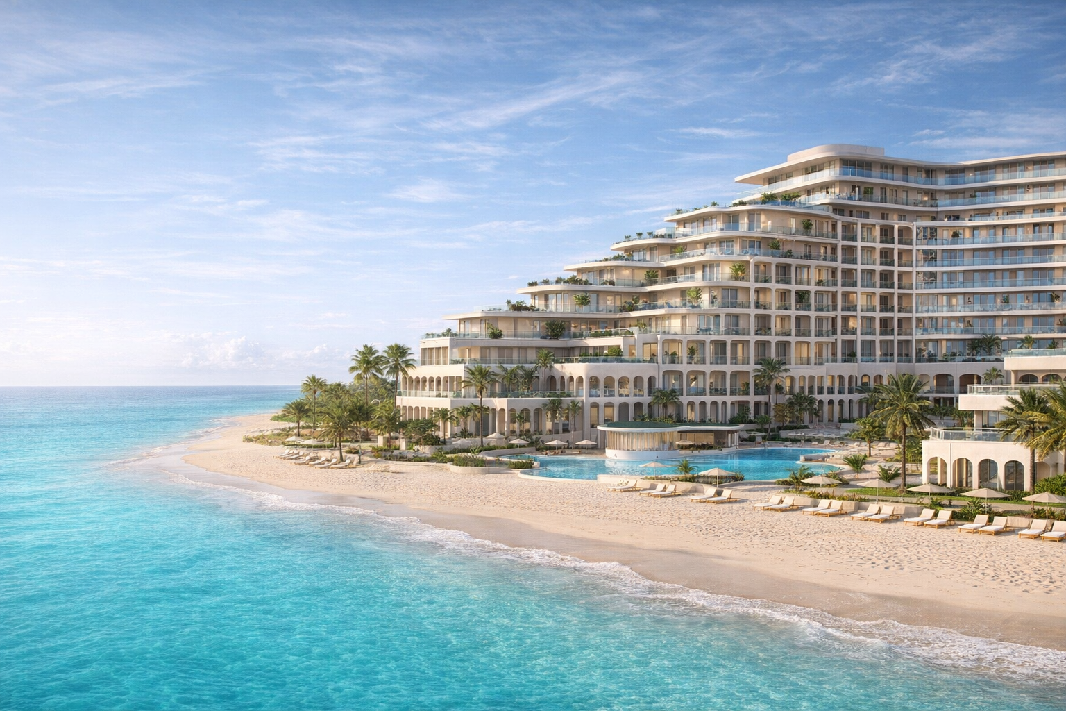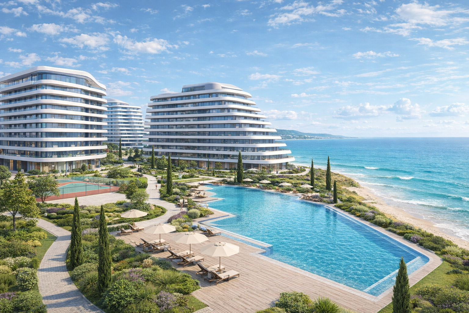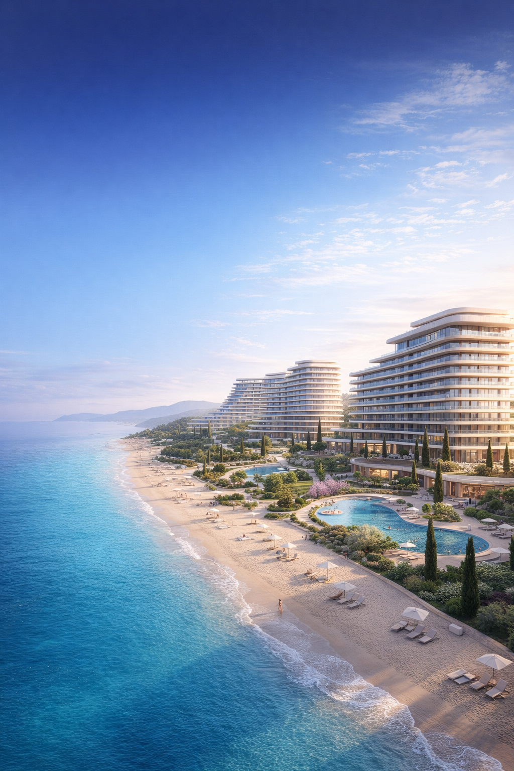 Все необходимое для курортной жизни: 3 бассейна и террасы с джакузи, парки, прогулочные зоны и скверы, приватная охраняемая территория и безопасность 365/24 и не только