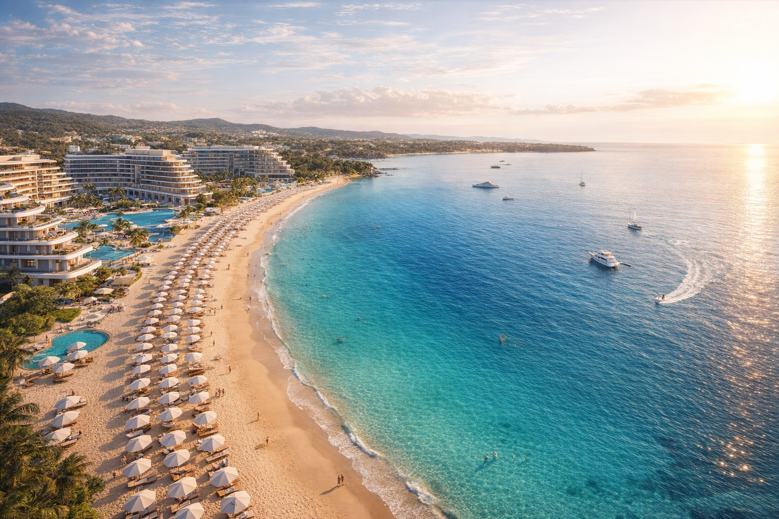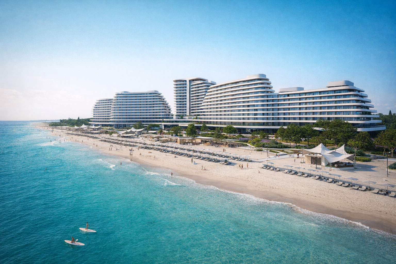 Личный песчаный пляж с огромной пляжной территорией 3,8 Га и разнообразными пляжными развлечениями